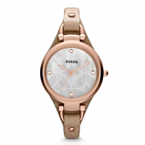 Are cureaua din piele,rezistă la apă până la 50 m şi carcasă din oţel inoxidabil placat.