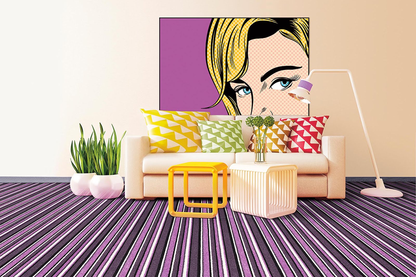 De această dată i-am dat voie să îşi aleagă ce mochetă vrea el. Să reprezinte vulcanul Krakatau în plină erupţie sau ce doreşte, numai să mă lase pe mine să dau eu culoare pereţilor şi să aleg mobilierul.
