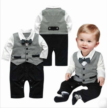 Cute Baby Boy Kids Children’s Suits Toddler Bowknot Long Sleeve Boys Romper Jumpsuit Clothes
