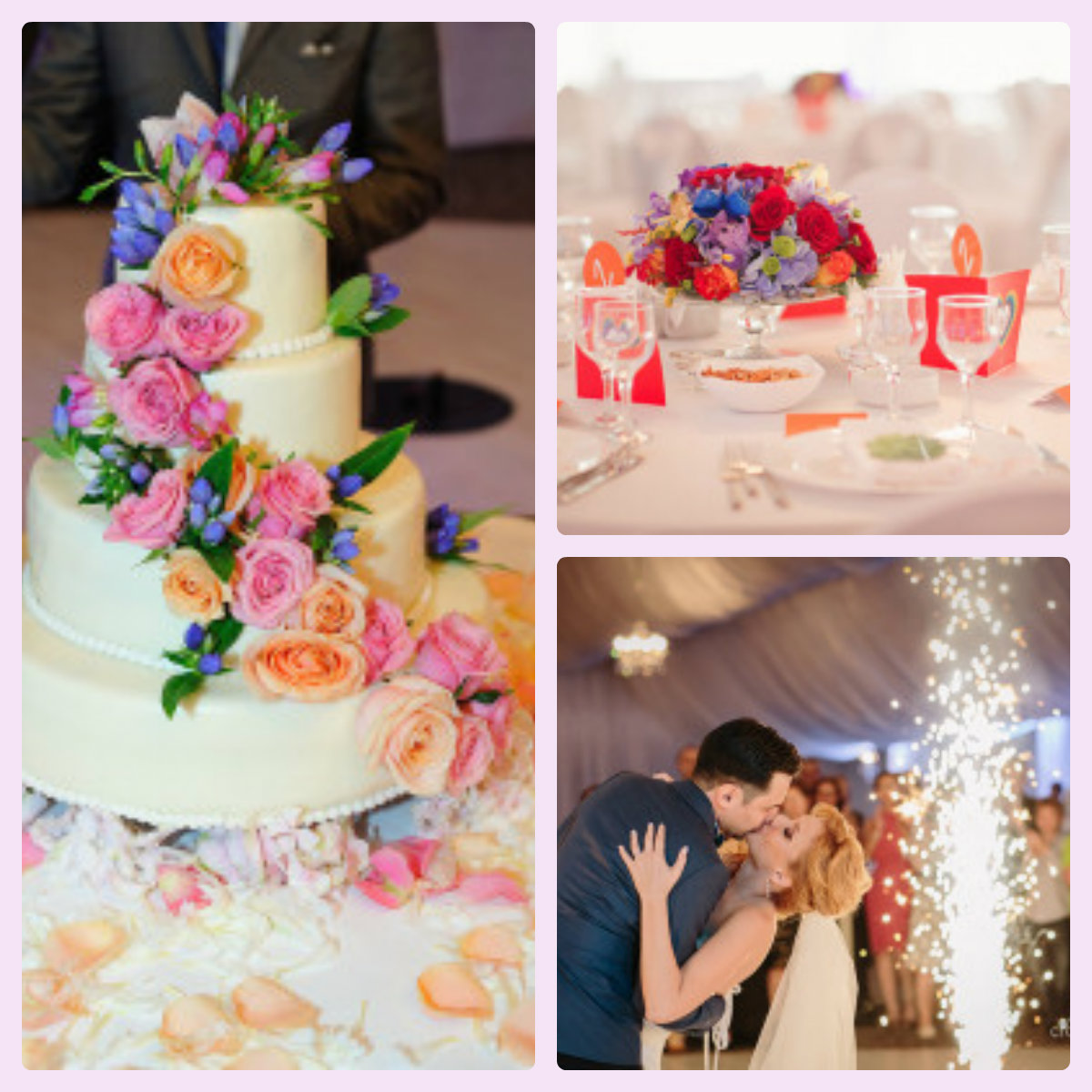 Aranjamentele florale spectaculoase vor împodobi fiecare masă, iar mărturiile vor consta în tablouri în miniatură cu cei doi miri şi săpunuri inimioară cu lavandă(floarea preferată a miresei) inscripţionate cu iniţialele celor doi.
